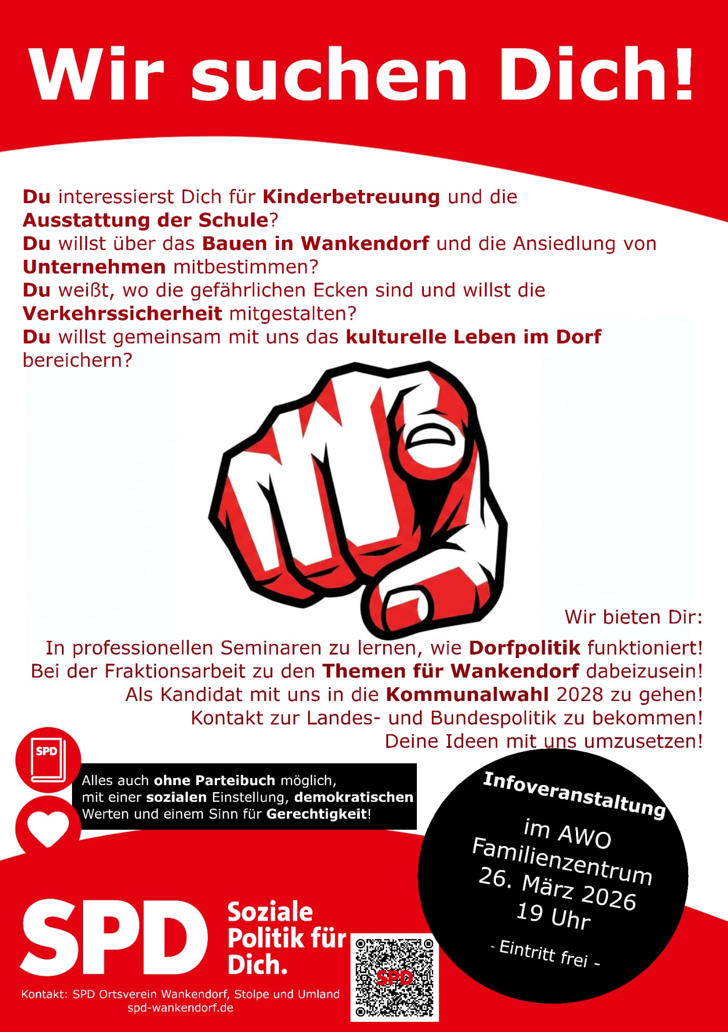 Der SPD Ortsverein Wankendorf, Stolpe und Umland lädt zu einer Infoveranstaltung zur Wahl 2028 ein.